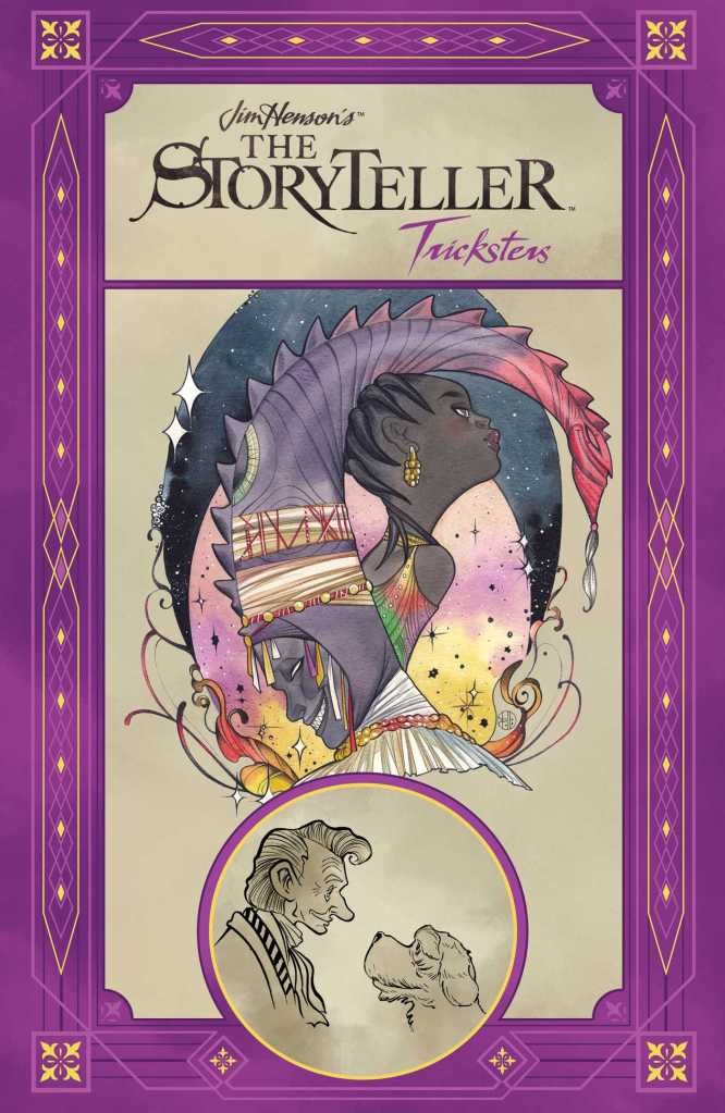 Jim Henson’s The Storyteller: Tricksters by Various Authors (Book about Switching Places, Mythology Retelling, About an Ancient Civilization, Elderly Protagonist, Righting a Wrong, A Graphic Novel, Purple Cover)