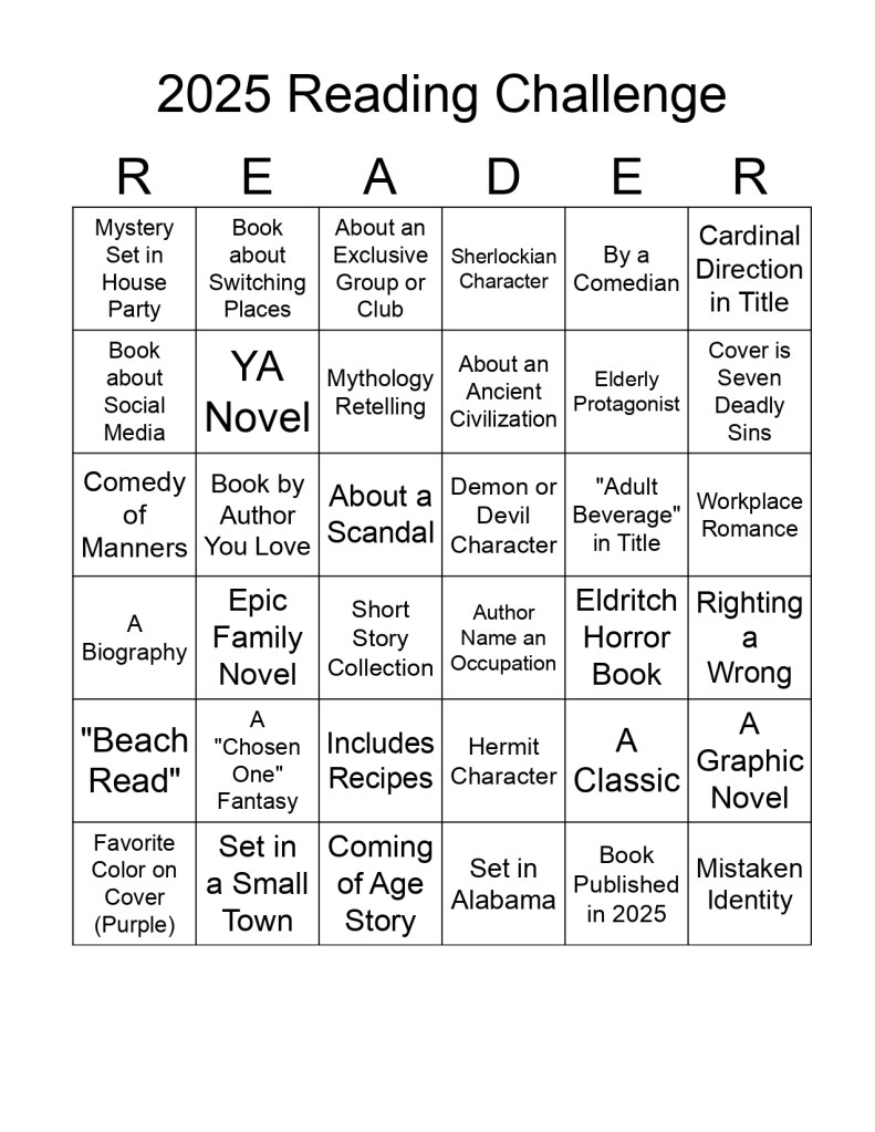 My husband and I take these categories, and we create a bingo board to gamify these challenges a little bit more.